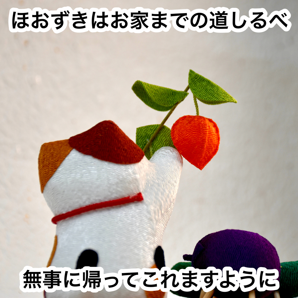・三毛猫…高さ(ほおずき含まず)85㎜(約) レーヨンちりめん