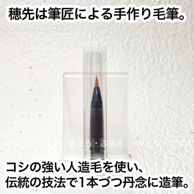 筆匠による手作り毛筆。コシの強い人造毛を使い、伝統の技法で1本ずつ丹念に造筆されています。